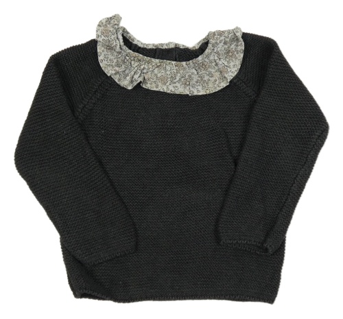 Antracitový sveter s kvetovaným golierom F&F