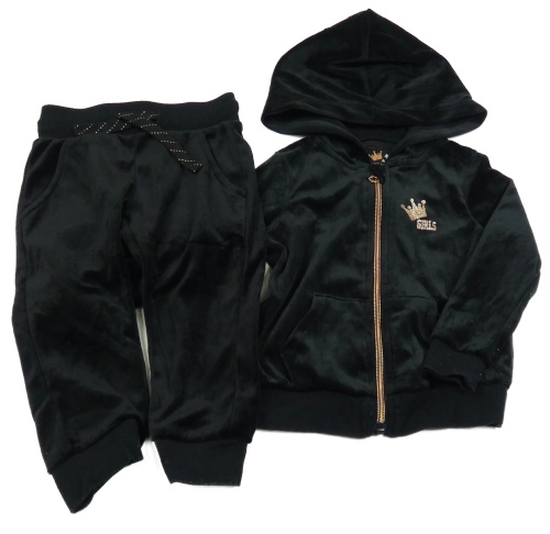 2set - Čierna prepínaci plyšová mikina s korunkou a kapucí + tepláky Pocopiano