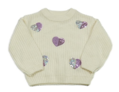 Smotanový rebrovaný pletený sveter so srdíčky z flitrů C&A
