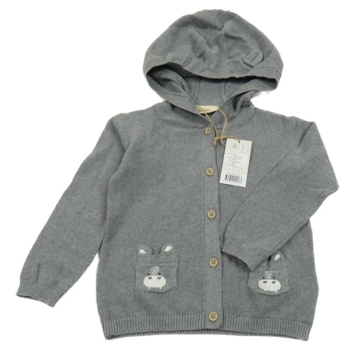Nové - sivý melírovaný prepínaci sveter s čumáčky/kapsami a kapucňou s uškami lupilu