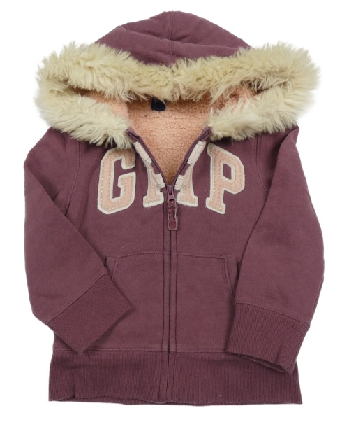 Mahagónovoá prepínaci zateplená mikina s logom a kapucňou s kožešinou GAP