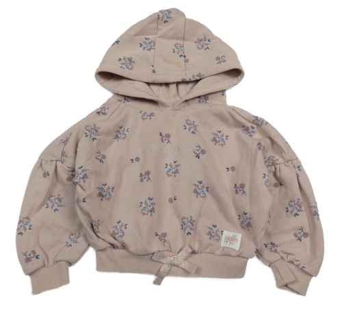 Pudrová oversize crop mikina s kvietkami a nápisom a kapucňou PRIMARK