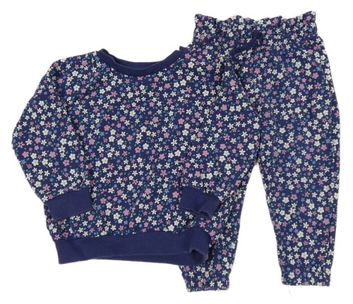 2Set - Tmavomodrá kvietkovana oversize mikina + paper bag tepláky George