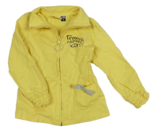 Žltá prepínaci mikina s nápisom a srdiečkami