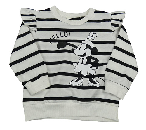 Smetanovo-čierna pruhovaná mikina s Minnie a volánikmi