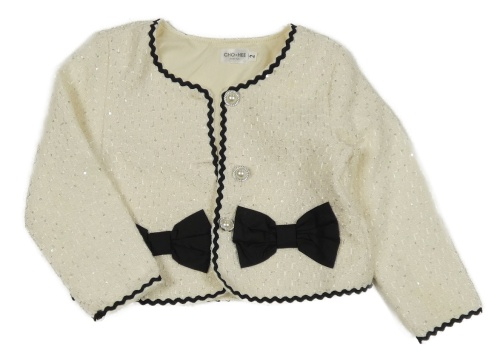 Smetanovo-čierne trblietavé bolerko s mašľami