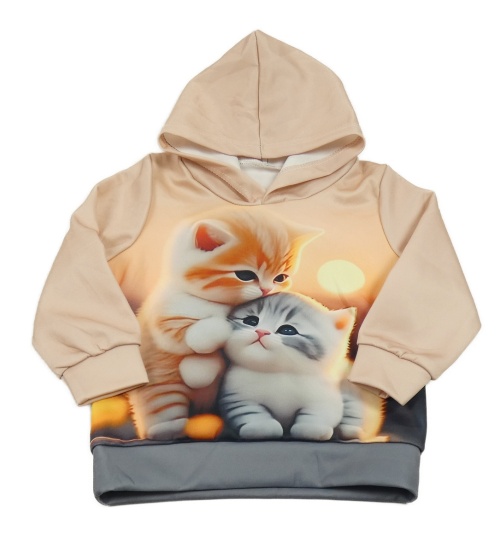 Svetloružová mikina s kočičkami a kapucňou