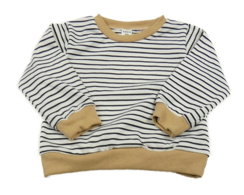 Bielo-čierna pruhovaná mikina s béžovými lemy Shein