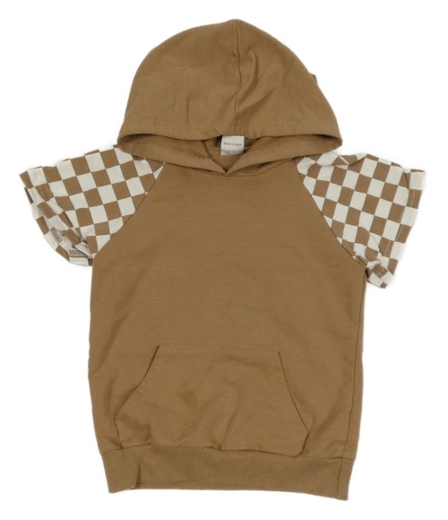 Béžovo-kockovaná tepláková vesta s kapucňou