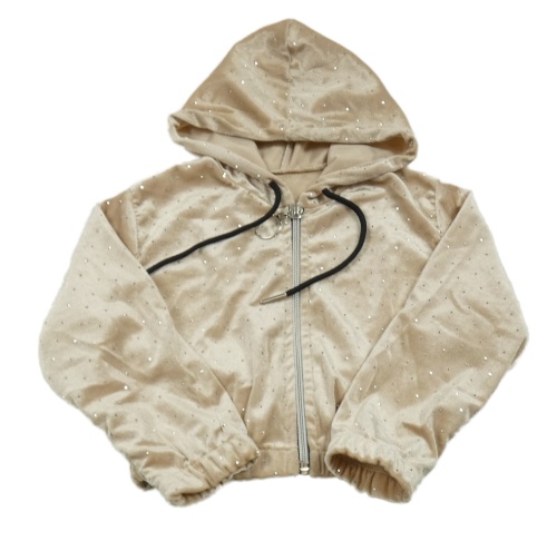 Svetlobéžová zamatová prepínaci crop mikina s kamienkami a kapucňou
