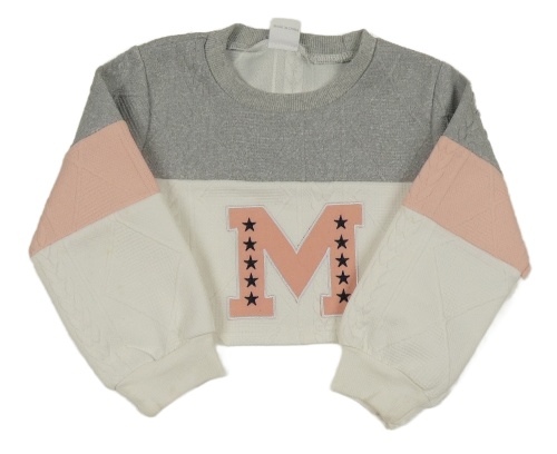 Sivo-bielo-ružová 3D vzorovaná crop mikina s písmenem