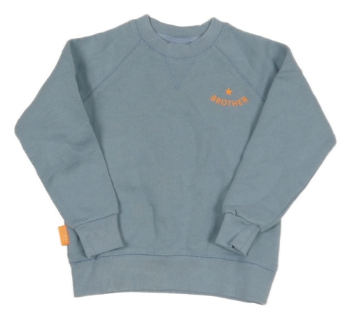 Světlešedomodrá mikina s nápisom