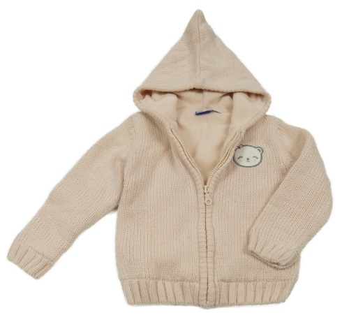 Ružový zateplený prepínaci sveter s medvěďom a kapucňou Lupilu