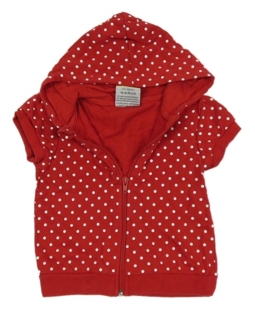 Červeno-biela bodkovaná á tepláková prepínaci vesta s kapucňou Topolino