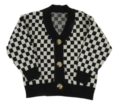 Čierno-bílo/světlešedý kockovaný pletený prepínaci sveter