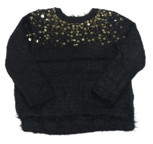 Čierny chlpatý sveter so zlatými flitre H&M