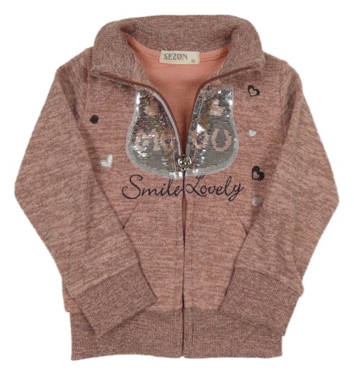 Starorůžovo-hnedá melírovaná prepínaci mikina s mačičkou s překlápěcími flitre a srdiečkami SEZON