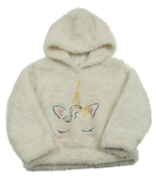 Smotanová chlpatá mikina s jednorožcom a kapucňou Shein