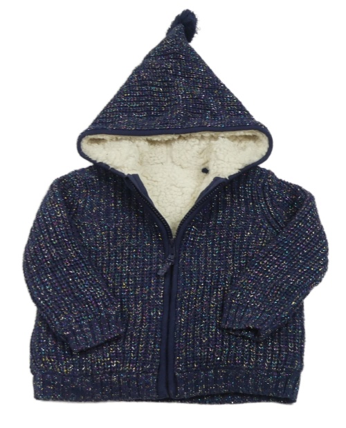 Tmavomodrý trblietavý zateplený prepínaci sveter s kapucňou M&S