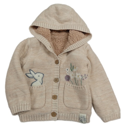 Svetloružový melírovaný trblietavý prepínaci zateplený sveter so zajícem a kapucňou Nutmeg