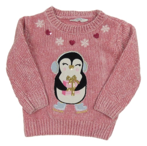 Svetloružový žinylkový sveter s tučňákem Primark