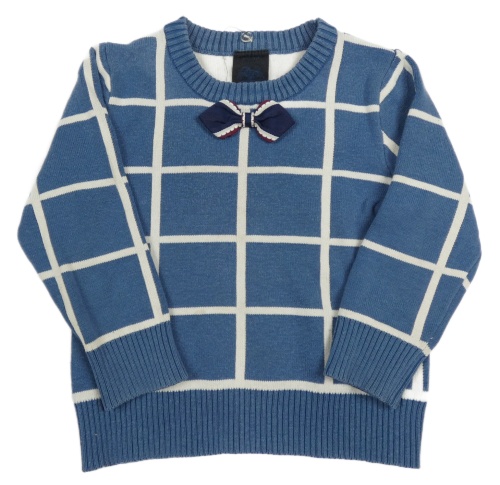 Tmavomodro-biely kockovaný sveter s mašlou