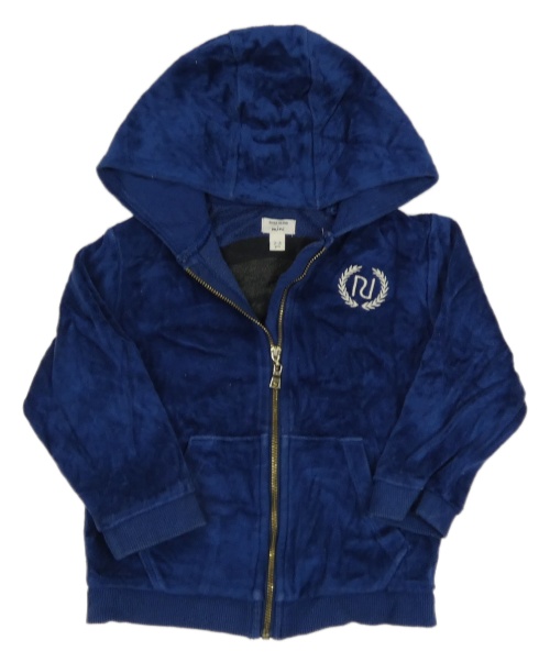 • Tmavomodrá sametová propínací mikin s logom a kapucňou RIVER ISLAND