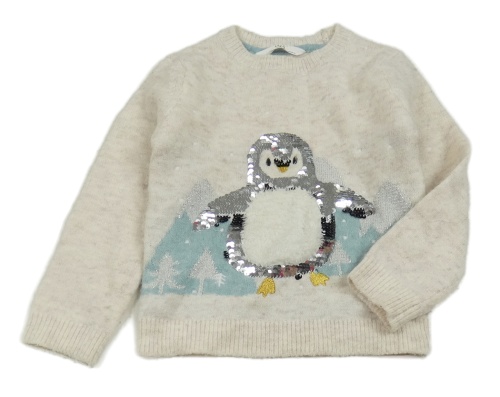 Nové -Smotanový melírovaný sveter s tučňákem z flitrů M&S
