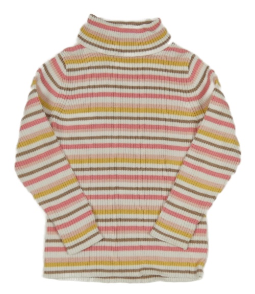 Bielo-hnedo-ružovo-žltý pruhovaný rebrovaný svetrový rolák George