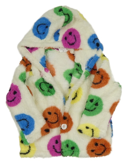 Smotanová chlpatá prepínaci mikina so smajlíkmi a kapucňou