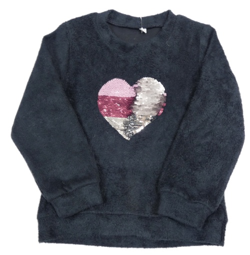 Tmavomodrá chlpatá mikina so srdcem z flitrů