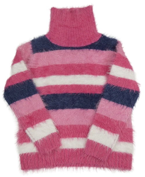 Ružovo-tmavomodro-biely pruhovaný chlpatý sveter s rolákom