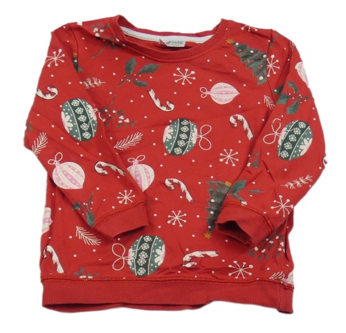 Červená mikina s vánočními ozdobami a stromky