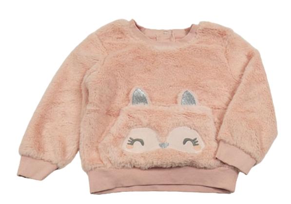 Ružová chlpatá mikina s vreckom s líškou Nutmeg