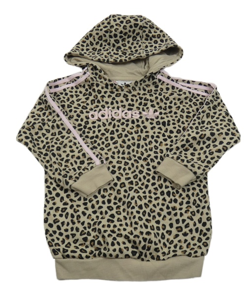 Béžová dlhá mikina s leopardím vzorem, logom a kapucňou Adidas