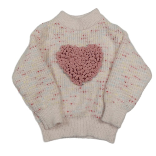 Svetloružová -farebný melírovaný rebrovaný sveter s 3D srdiečkom