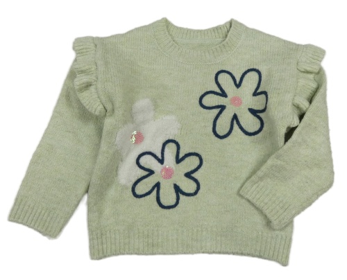 Mintový sveter s kvetinami a volánikmi Nutmeg