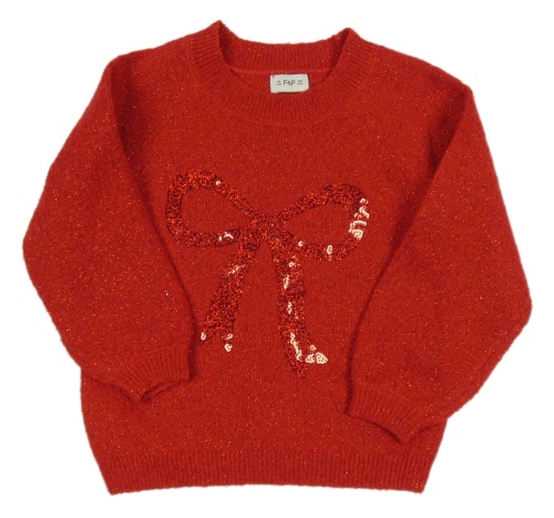 Červený trblietavý sveter s mašlí z flitrů F&F