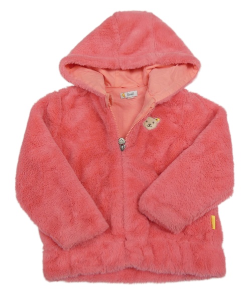 Ružová chlpatá podšitá mikina s medvedíkom a kapucňou