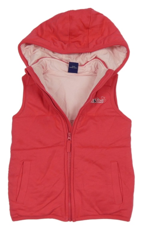 Malinová tepláková zateplená vesta s nápisom a kapucňou