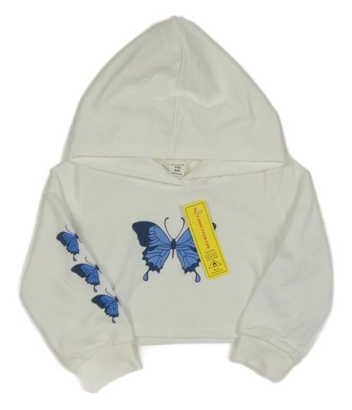 Nové - biela ľahká crop mikina s motýlkom a kapucňou shein