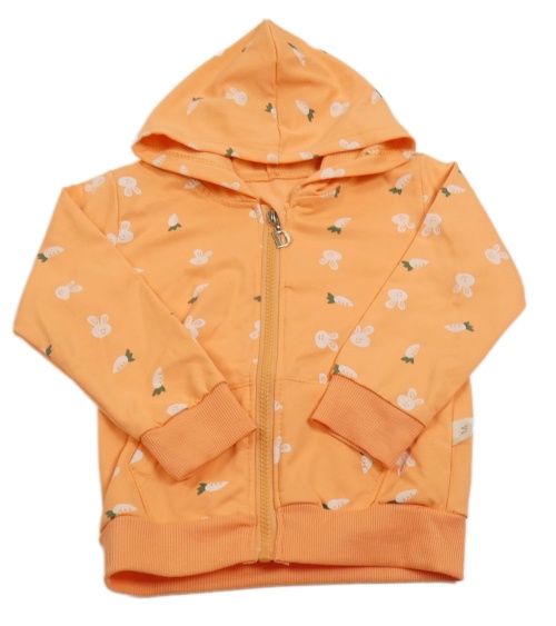 Oranžová prepínaci mikina so zajačikmi a mrkvičkami a kapucňou