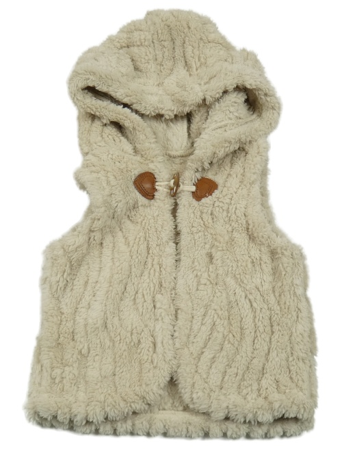 Béžová kožušinová vesta s kapucňou
