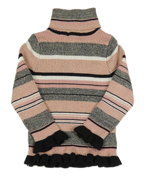 Starorůžovo-čierno-bielo-zlatý pruhovaný úpletový rolák s volánikmi PRIMARK