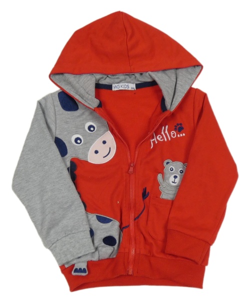 Červeno-sivá prepínaci mikina so zvieratkami a kapucňou