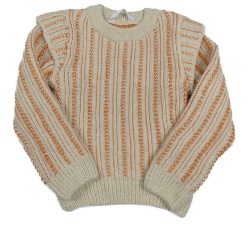 Smetanovo-oranžový pruhovaný rebrovaný sveter s volánikmi M&S