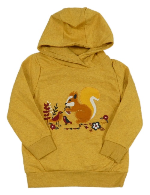Okrová melírovaná mikina s veverkou s vtáčky a kapucňou Topolino