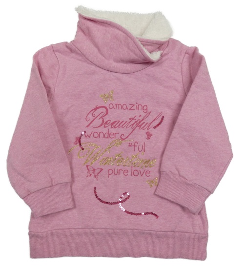 Ružová melírovaná mikina s nápisom s motýly a komínovým golierom Topolino