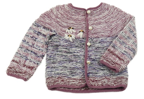 Švestkovo-bielo-čierno-vínový melírovaný pletený prepínaci sveter s kvetmi