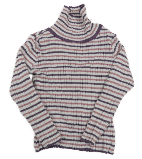 Smetanovo-starorůžovo-tmavofialový pruhovaný rebrovaný svetrový rolák Nutmeg